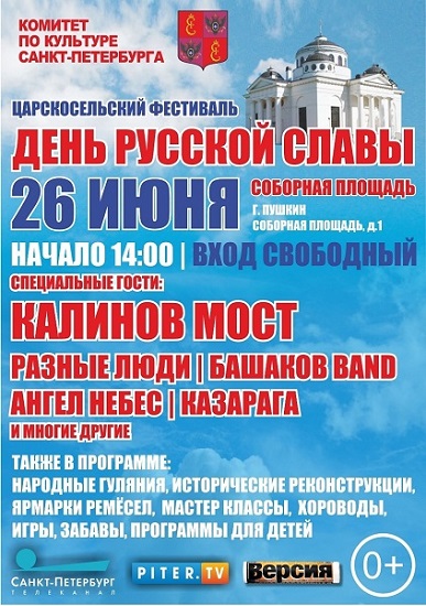 26 июня VIII Царскосельский фестиваль «День Русской Славы»!