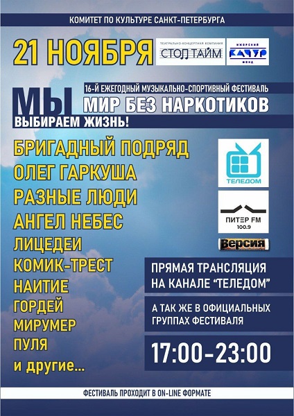 В фестивале примут участие рок-группы: «Бригадный подряд», Олег Гаркуша («АукцЫон»), «Разные люди», «Ангел НеБес» , «Наитие», актеры театра «Лицедеи» и другие. Ведущая – Женя Глюкк.